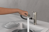Ausführung: Edelstahl-Optik Spültischarmatur mit herausziehbarem Auslauf Nachhaltige Mischbatterie Küche mit Eco-Click-Funktion für bis zu 50% Wasserersparnis